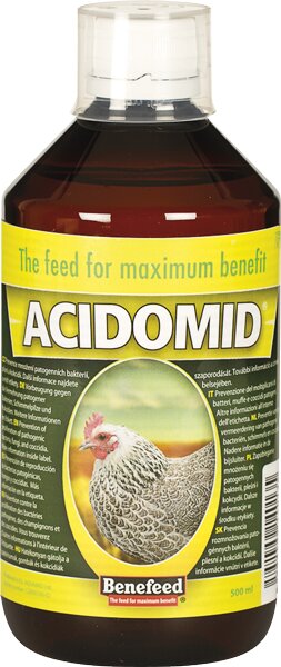 Acidomid to produkt o działaniu zapobiegawczym przeciwko rozprzestrzenianiu się bakterii, grzybów i kokcydiów u drobiu.