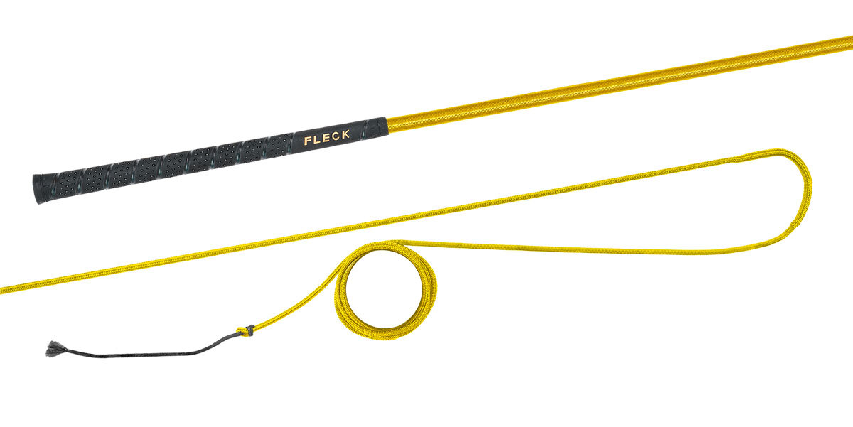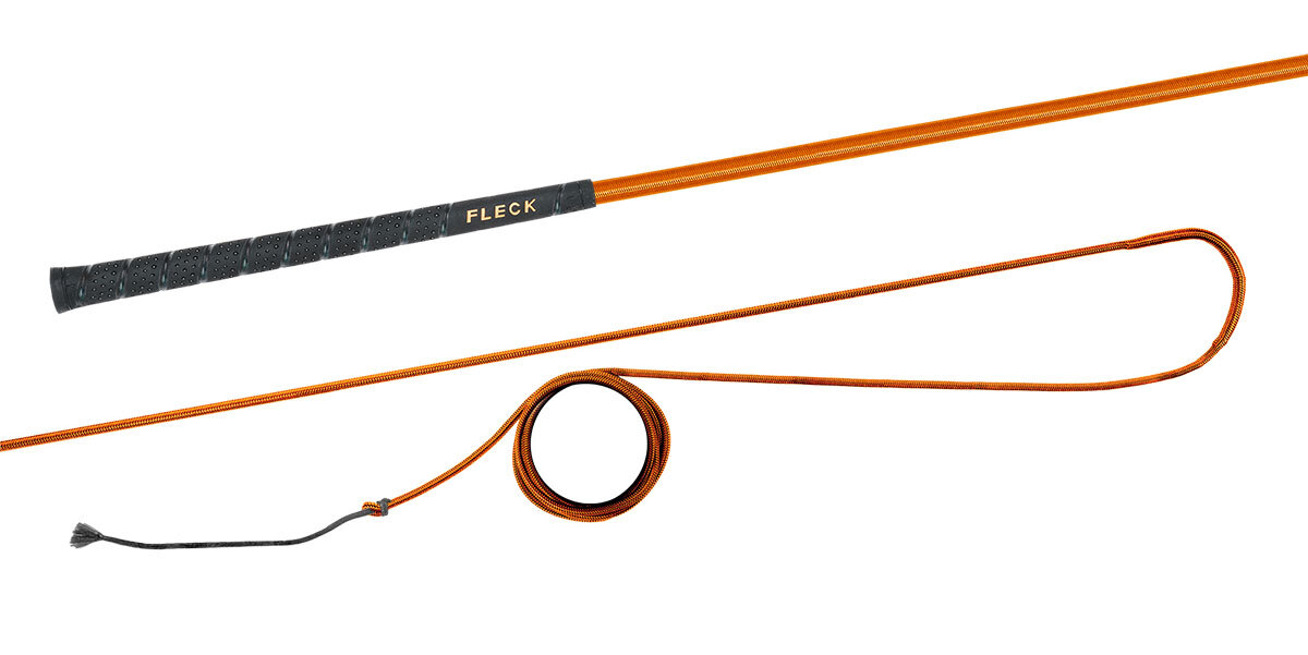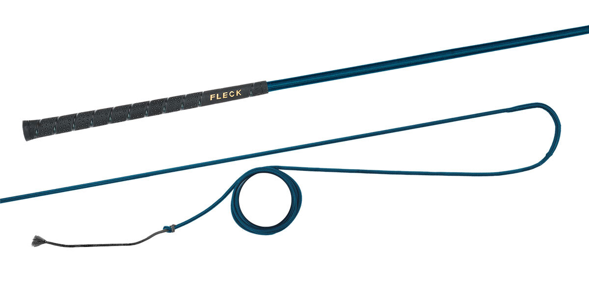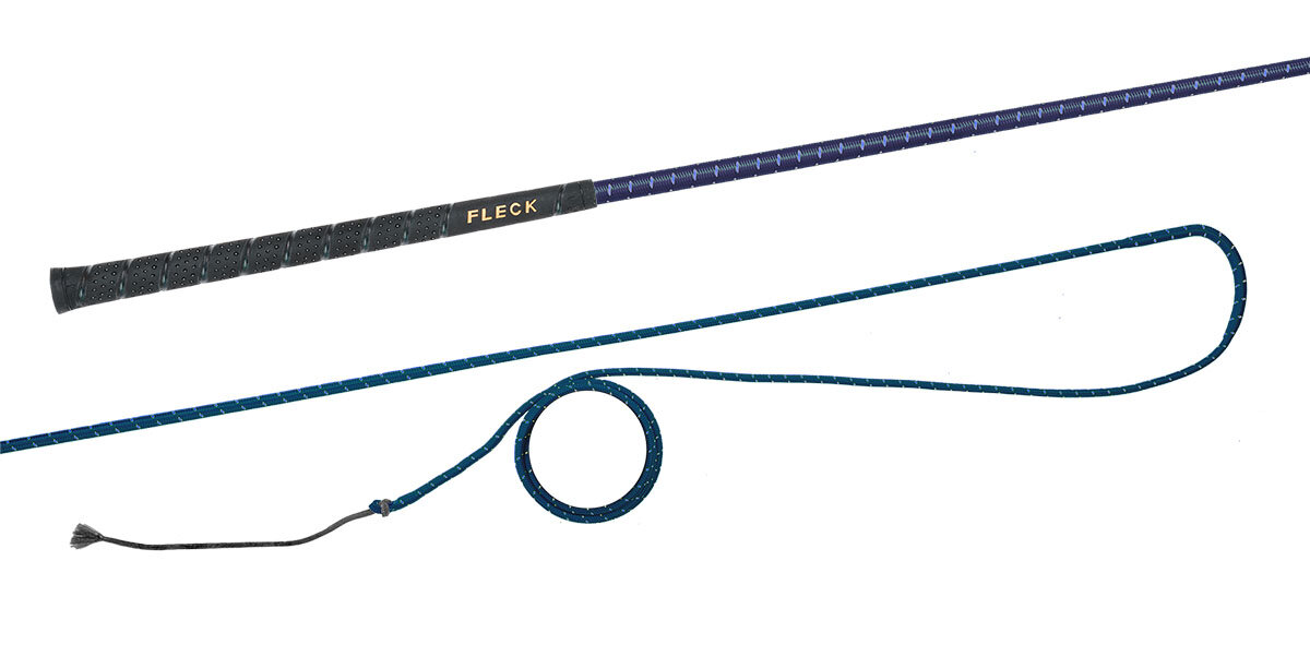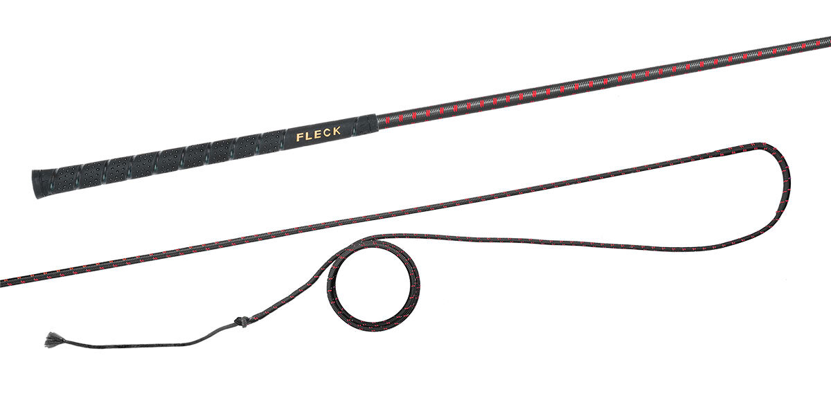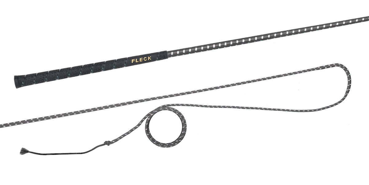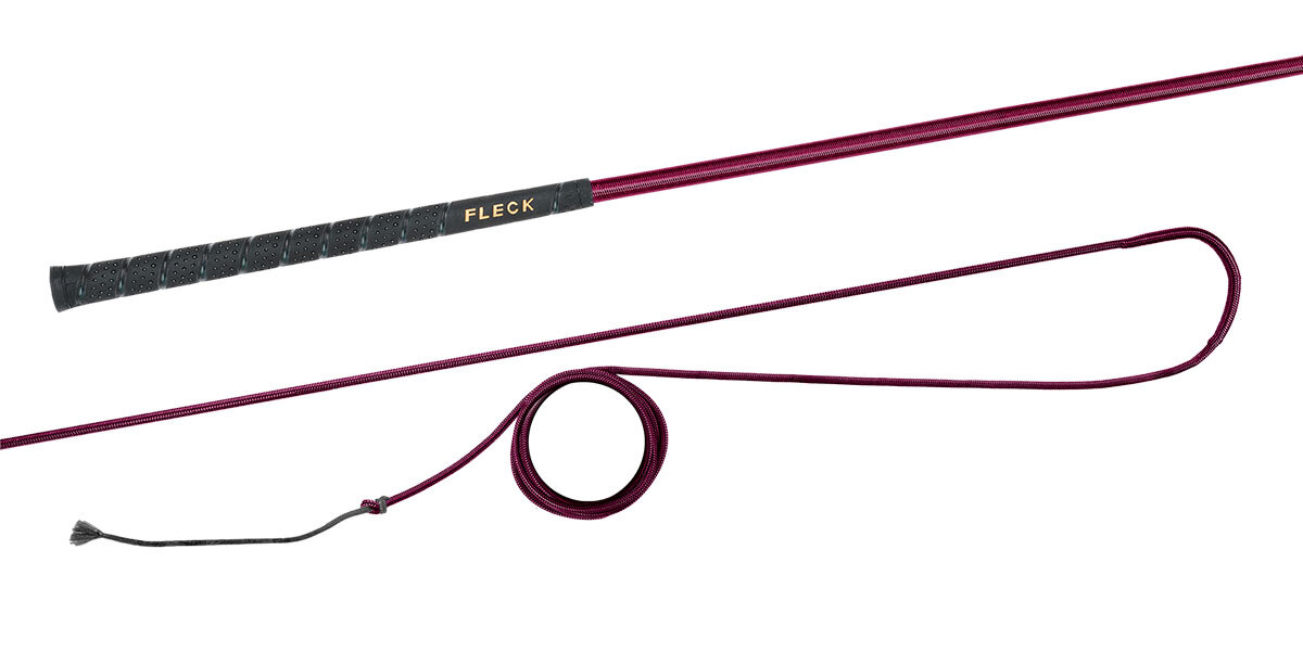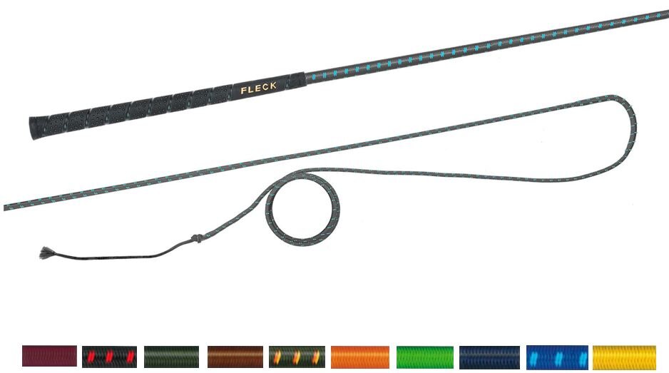Bat do lonżowania niedzielony z kolorowym nylonowym oplotem z antypoślizgową i przyjemną w dotyku rękojeścią FLECK-grip.