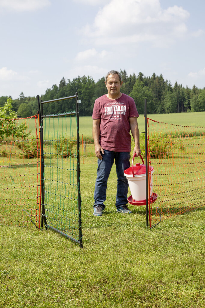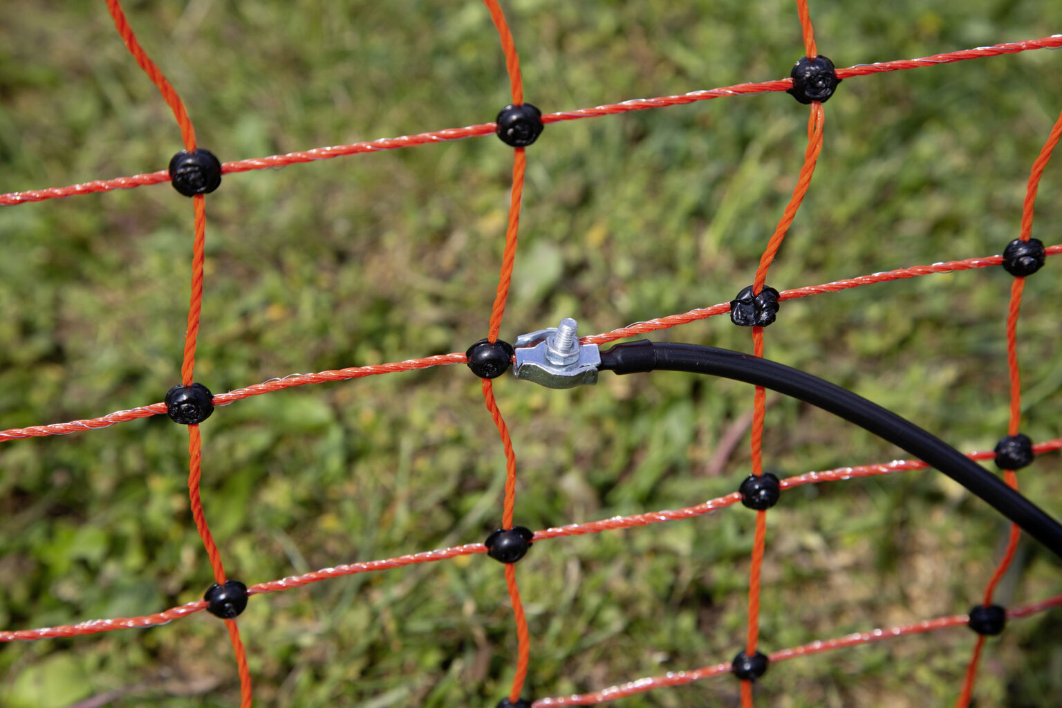 Zielona siatka drzwi jest elektryfikowalna i stabilna, rama jest izolowana.