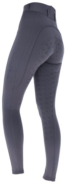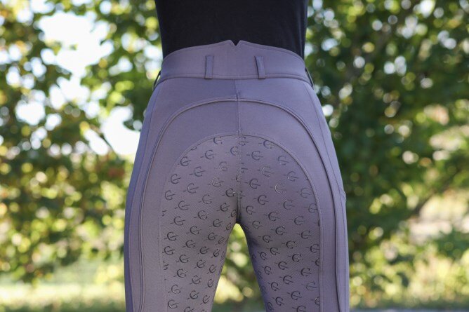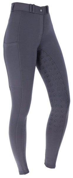 Klasyczne całoroczne bryczesy jeździeckie z ultraelastycznego mikrowłókna, z silikonowym nadrukiem w kształcie logo Covalliero na całym leju i praktyczną kieszonką na telefon.