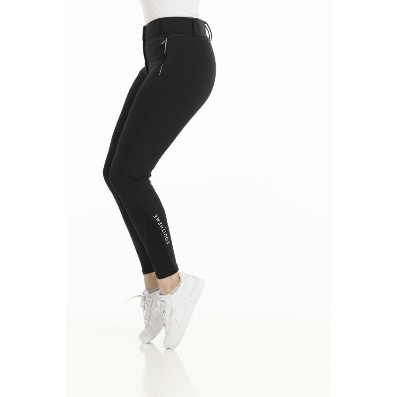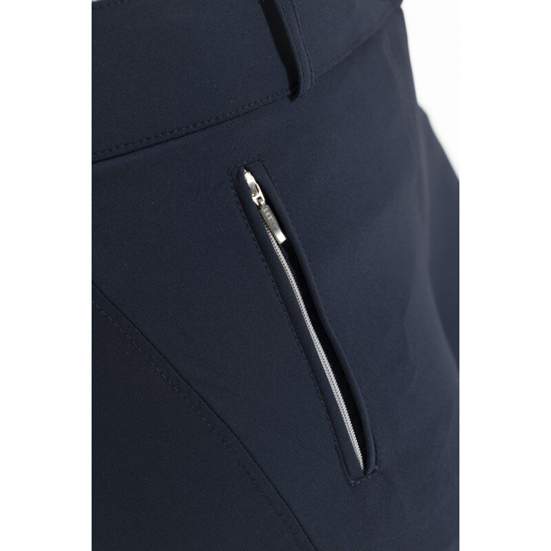 Damskie letnie, jeździeckie bryczesy z pełnym skórzanym lejem, który zapewnia maksymalną przyczepność, z wysoko elastycznego materiału, 2 przednie kieszenie zapinane na zamek, dolna część nogawek z elastanu dla wygodnego zakładania i zdejmowania.• bryczesy damskie