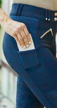 Te damskie spodnie jeździeckie z pełnym silikonowym nadrukiem CovallieroGrip naprawdę mają to coś! Spodnie mają po bokach siateczkowe wstawki, które pomagają regulować temperaturę i wspierają cyrkulację powietrza, nie brakuje też praktycznej kieszeni na telefon komórkowy oraz dwóch przednich kieszeni zapinanych na rzep.