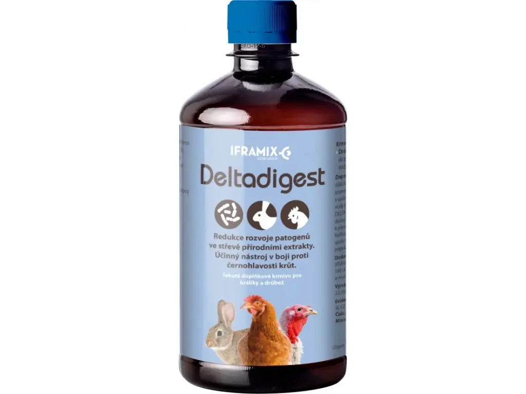 - Drób/króliki: podawać Deltadigest do wody pitnej w ilości 4 ml na litr wody pitnej przez 4 dni co 2 tygodnie. Dla ułatwienia stosowania do produktu dołączona jest również miarka. Należy zapewnić równomierne wymieszanie preparatu z wodą. Po pewnym czasie poszczególne składniki mogą się częściowo oddzielić, dlatego zalecamy wstrząsnąć przed każdym użyciem.