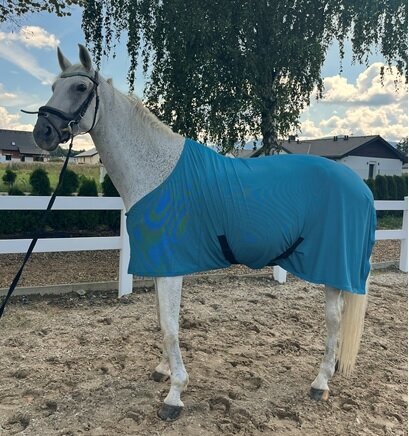 Bardzo przewiewna, lekka, elastyczna derka letnia z zapięciem krzyżowym zapobiegającym przekręcaniu się. Derka jest odpowiednia do stajni, na transport w przyczepie.