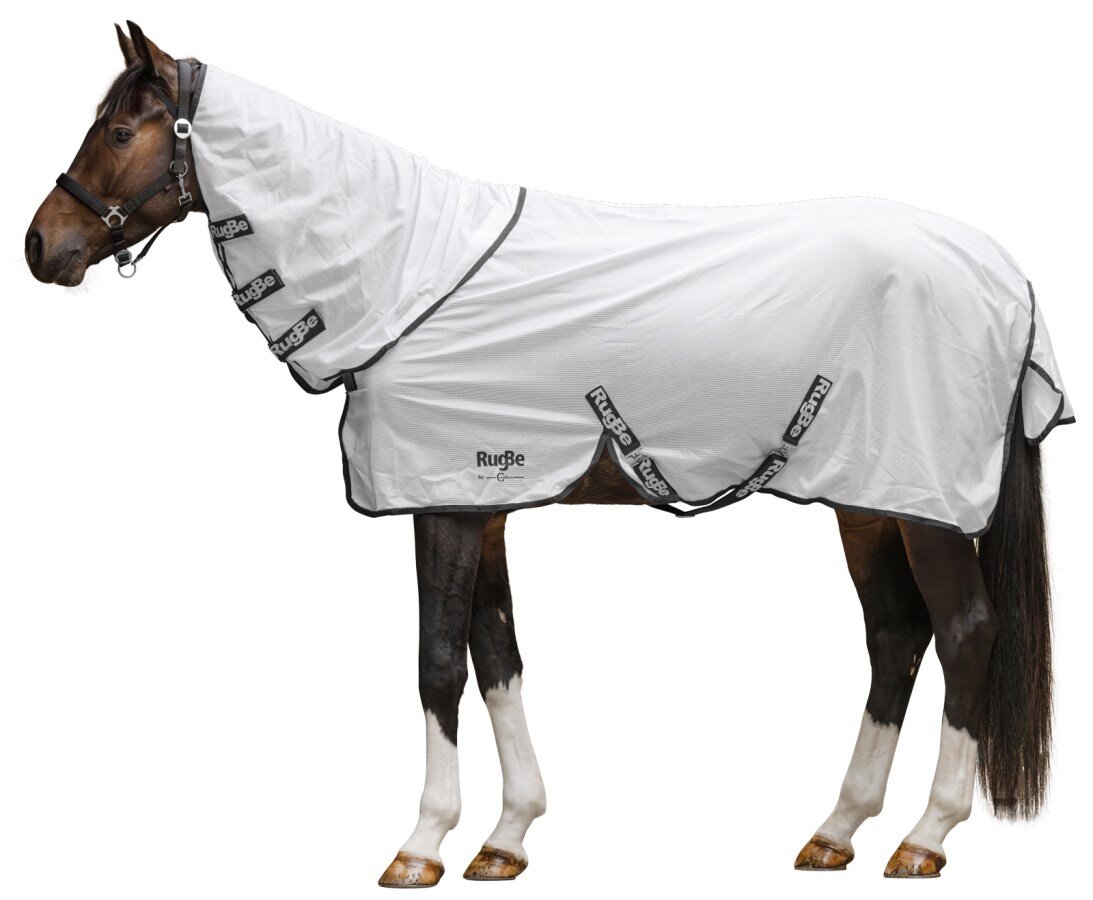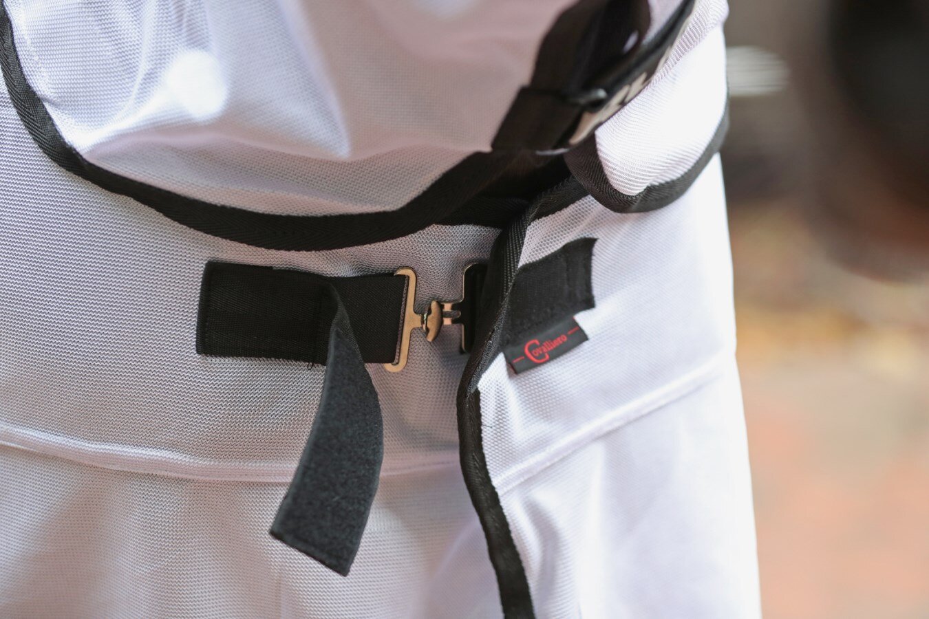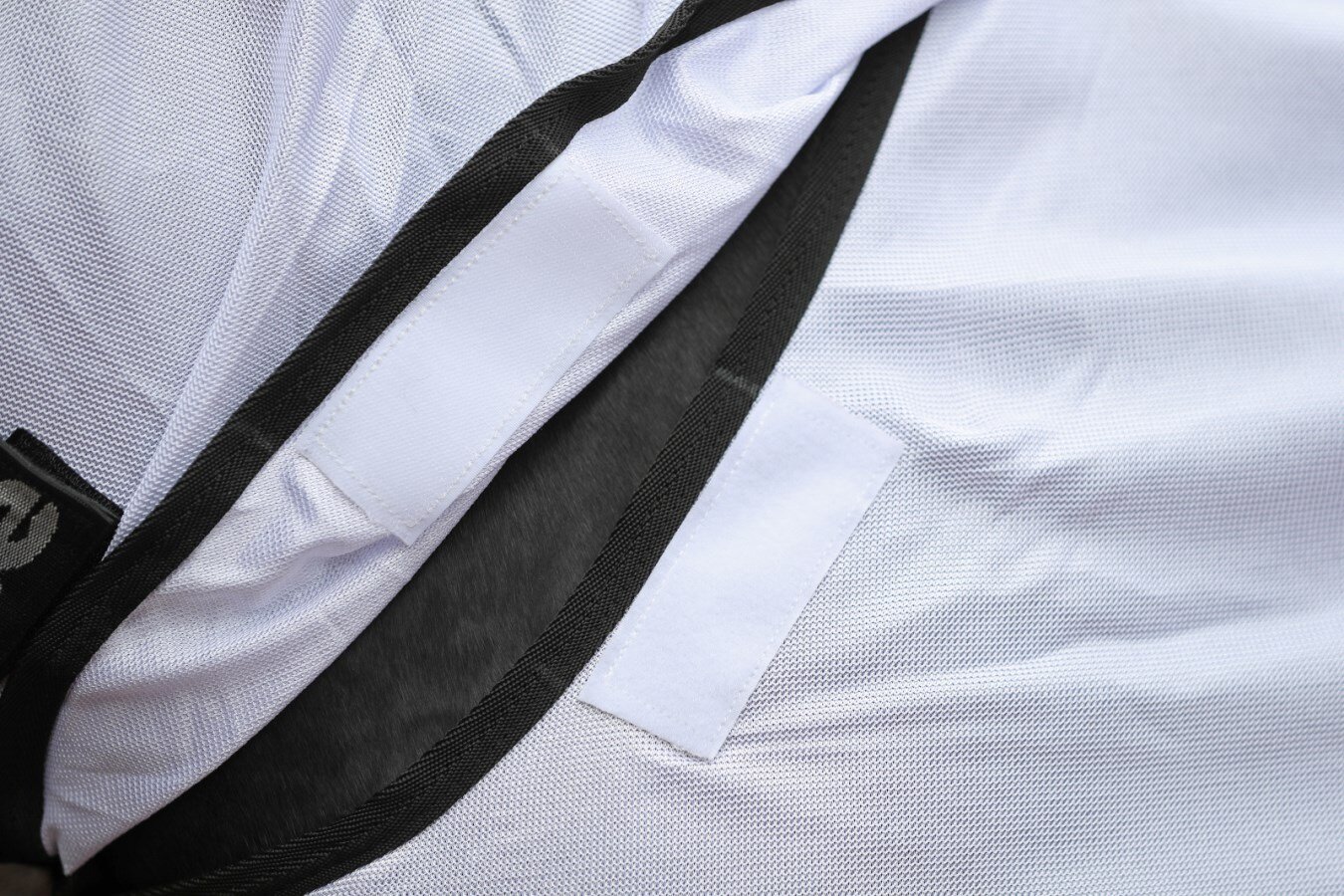 Delikatna siateczka z miękkiego poliestru niezawodnie chroni skórę konia bez podrażnień. Derka ma odpinaną część szyjną i elastyczne paski na nogi, które zapobiegają zsuwaniu się. Duża klapa ogonowa, podszyta część piersiowa i zapięcie na rzep w okolicy szyi i klatki piersiowej zapewniają maksymalny komfort i funkcjonalność.