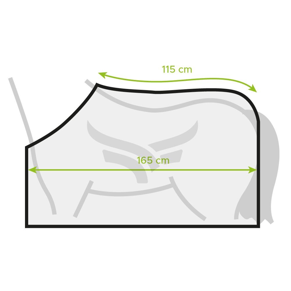Derka przeciw owadom z odpinaną częścią szyjną z wyjątkowo przyjemnego, lekkiego i oddychającego materiału. Gęsty poliester oferuje doskonałą ochronę przed owadami. Zaletą jasnego koloru derki jest ochrona przed przegrzaniem.