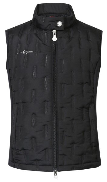 Lekka, sportowa, kombinowana dziecięca kamizelka z elastycznego materiału po bokach i pikowanego poliestru. Kamizelka ma stójkowy kołnierz z paskiem na nap, dwukierunkowy zamek błyskawiczny oraz haft Covalliero po prawej stronie.
