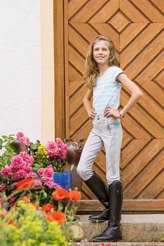 Model Bali Flex łączy modny wygląd z jeszcze większą elastycznością. Elastyczne wstawki na udach zapewniają jeszcze większą swobodę ruchów. Przewiewny i lekki materiał z mieszanki bawełny i mikrowłókna zapewnia maksymalną radość z jazdy nawet przy znacznie wysokich temperaturach. Nogawki nie są zakończone rzepem, ale materiałem ElastoSoft, który zapewnia maksymalny komfort w wysokich butach jeździeckich.