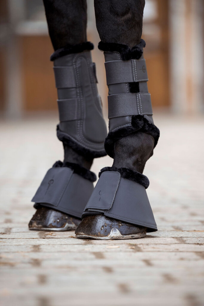 Dzwony na kopyta z futerkiem Covalliero A/W 2023, czarne