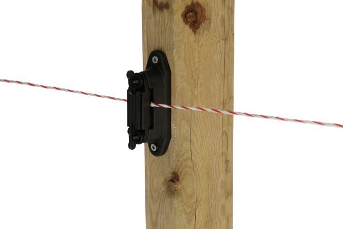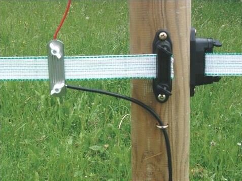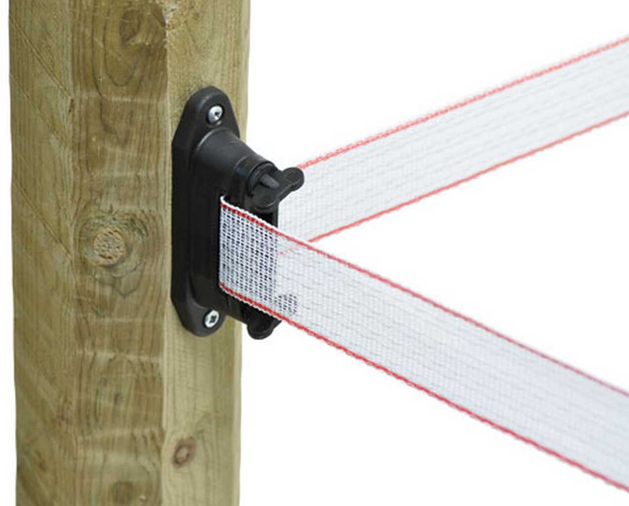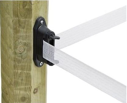 Izolator narożny na taśmę 10-40 mmDoskonały, wielofunkcyjny izolator przede wszystkim do taśmy do 40 mm, ale także do linki do 6 mm, przy stawianiu ogrodzeń dla koni (padoków).