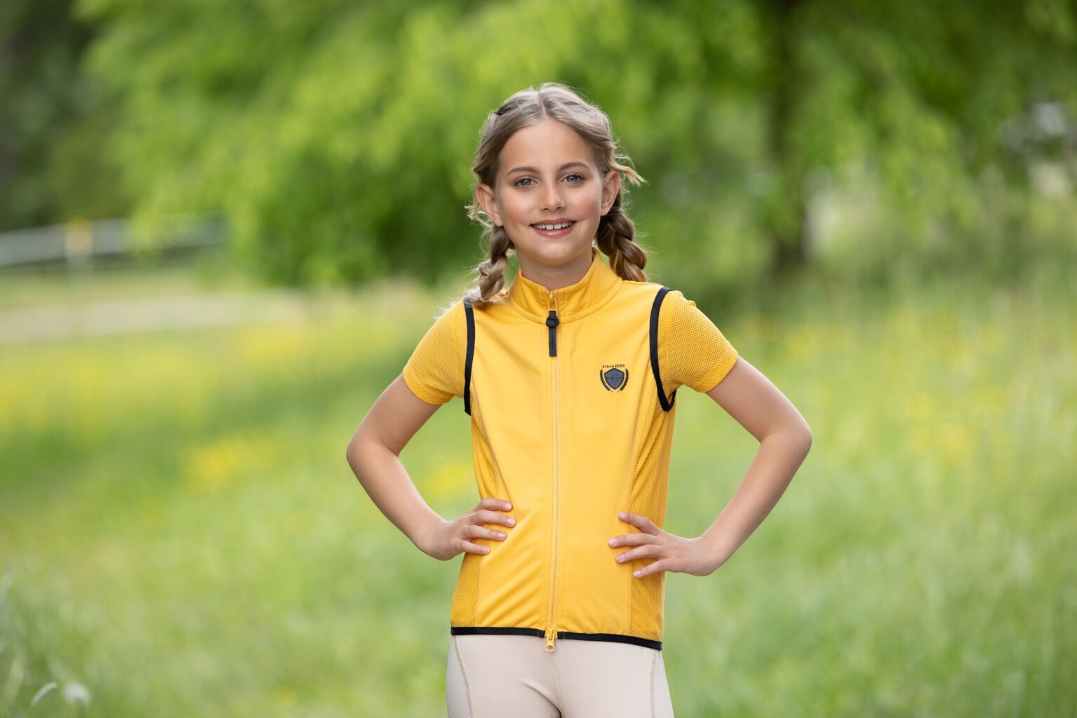 Kamizelka dziecięca kombinowana Covalliero S/S 2024, żółta