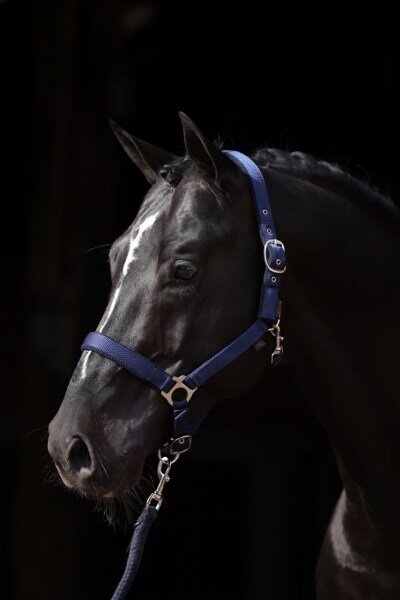 Nowoczesny kantar w klasycznych kolorach z możliwością regulacji nachrapnika i potylicy, podszyty polarem, z wytrzymałego materiału odpornego na zużycie z mocnymi szwami i masywnym okuciem.