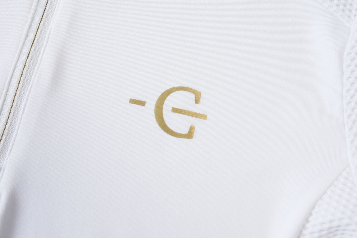 Koszulka wykończona jest stylowym, stójkowym kołnierzykiem zapinanym na zamek błyskawiczny. Subtelne, brokatowe detale na kołnierzyku dodają subtelnego akcentu elegancji, nie rozpraszając przy tym. Dzięki zoptymalizowanemu odprowadzaniu wilgoci skóra pozostaje sucha nawet przy dużym obciążeniu.