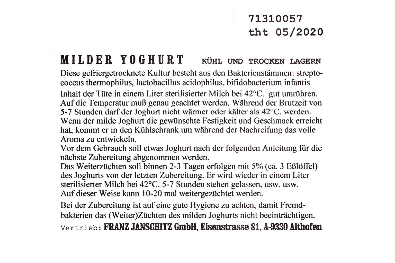 Starter do jogurtu M- Culture Kultura jogurtowa o wysokiej sprawności. Kultura ta charakteryzuje się delikatnym smakiem, jest to kultura mieszana.Kultura jogurtowa „fitness” - starter