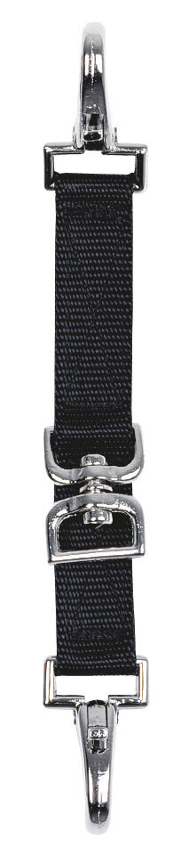 Łącznik do lonży z 3-warstwowego przeszywanego paska z niklowanymi karabińczykami i krętlikiem pośrodku.• wykonany z 3-warstwowego przeszywanego paska