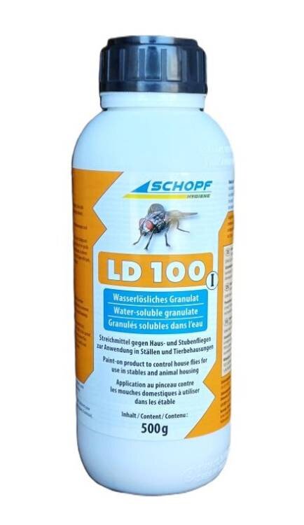 LD 100 I to skuteczny preparat w postaci granulatu rozpuszczalnego w wodzie, przeznaczony do zwalczania much i much domowych. Przeznaczony jest przede wszystkim do stosowania w stajniach, budynkach gospodarczych i innych pomieszczeniach ze zwierzętami, gdzie skutecznie pomaga ograniczyć występowanie uciążliwych owadów.