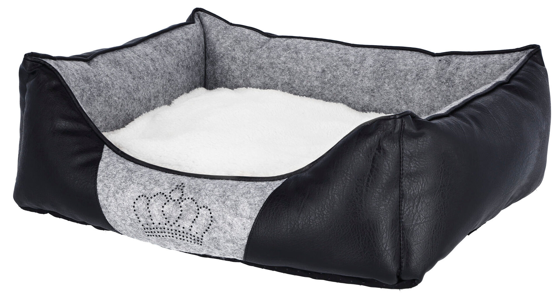 - Materiał: Trwały, wysokiej jakości materiał ze sztucznej skóry i filcu (100% poliester) - można prać wyłącznie ręcznie. Wewnętrzna miękka pluszowa poduszka, można prać w pralce w temperaturze 30°C. Legowisko jest wyposażone w warstwę antypoślizgową na spodzie.