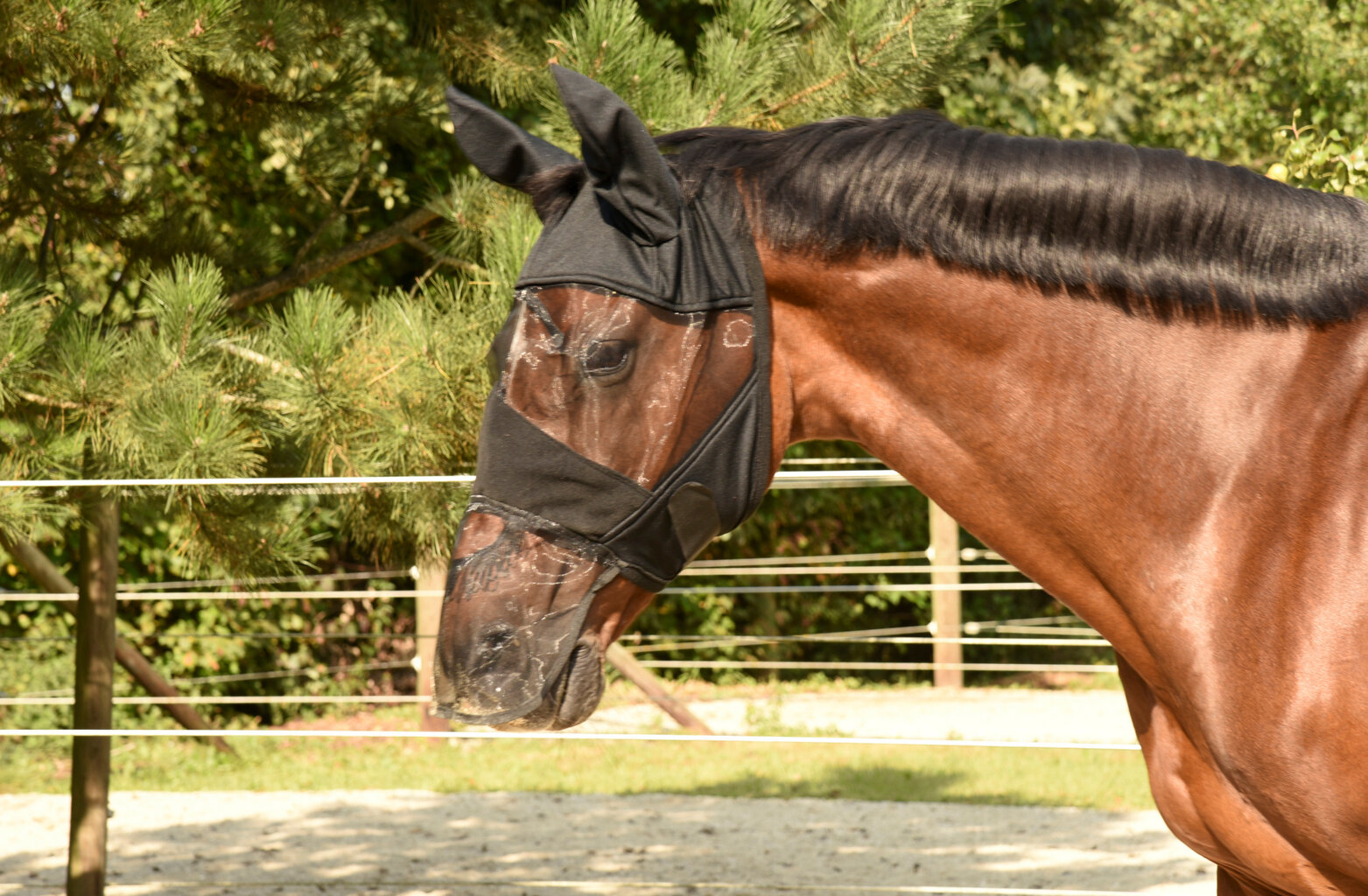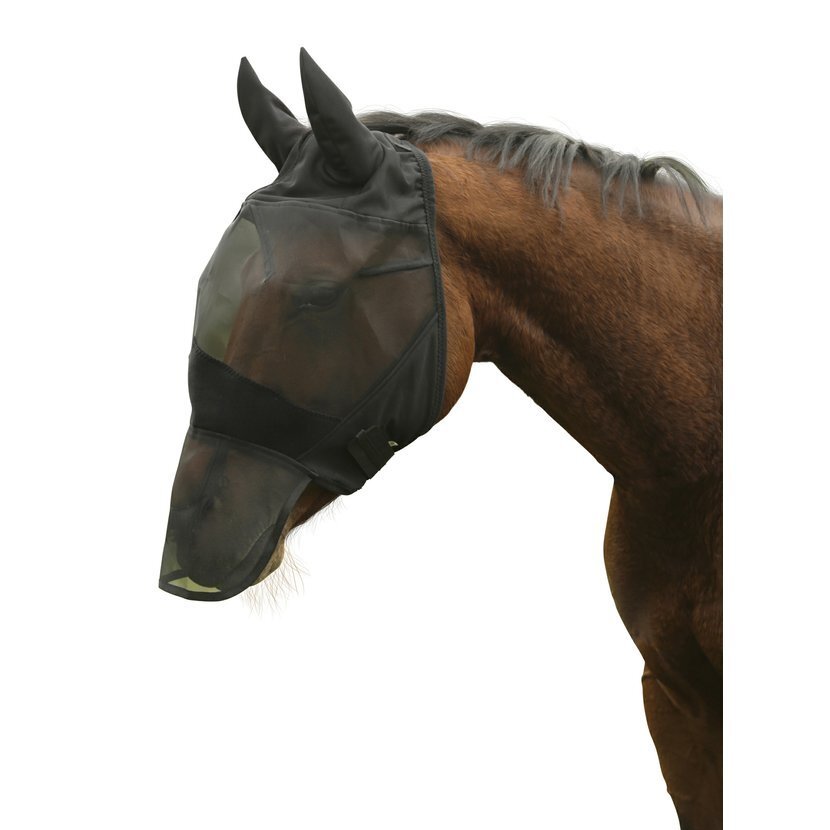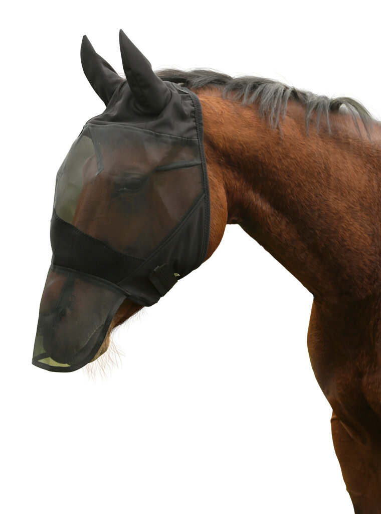 Maska przeciw muchom z osłoną uszu i nozdrzy.• anatomicznie wyprofilowana osłona chroniąca skórę między nozdrzami a oczami