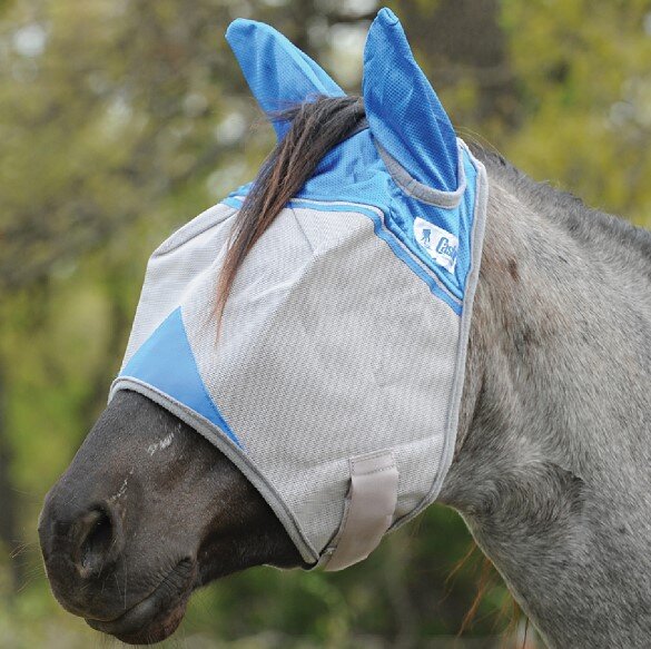Bardzo wygodna maska przeciw owadom z ochroną uszu. Maska zapewnia wysokiej jakości ochronę przed muchami, komarami, pyłkami, owadami latającymi i błotem. Specjalna opatentowana konstrukcja zapewnia koniowi niezakłócony widok, nie spada z głowy, zapewnia 70% ochronę przed promieniowaniem UV.