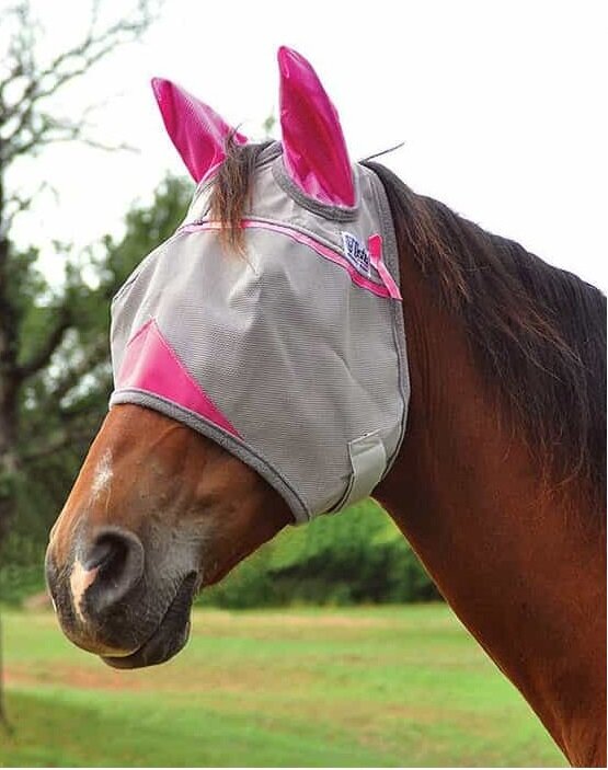 Bardzo wygodna maska przeciw owadom z ochroną uszu. Maska zapewnia wysokiej jakości ochronę przed muchami, komarami, pyłkami, owadami latającymi i błotem. Specjalna opatentowana konstrukcja zapewnia koniowi niezakłócony widok, nie spada z głowy, zapewnia 70% ochronę przed promieniowaniem UV.