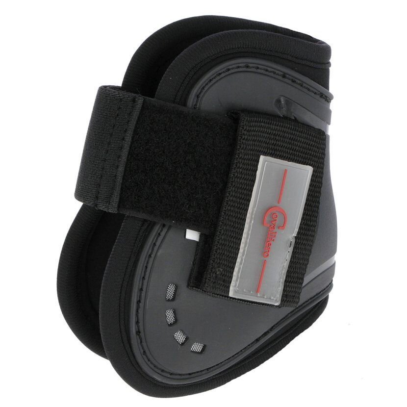 Anatomicznie ukształtowane ochraniacze na tylne nogi z miękkiego, ale wytrzymałego odlewu z gumy syntetycznej, który tłumi uderzenia, z otworami wentylacyjnymi zapewniającymi większą oddychalność. Proste zapięcie na rzep.