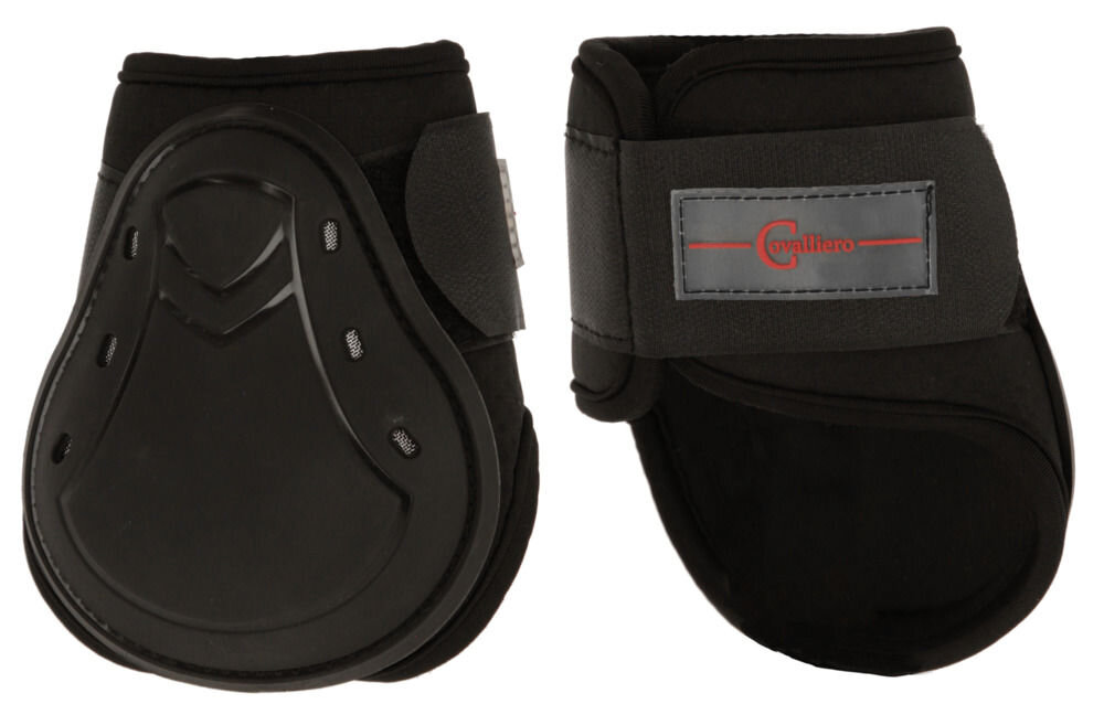 Anatomicznie ukształtowane ochraniacze na tylne nogi z miękkiego, ale wytrzymałego odlewu z gumy syntetycznej, który tłumi uderzenia, z otworami wentylacyjnymi zapewniającymi większą oddychalność. Proste zapięcie na rzep.