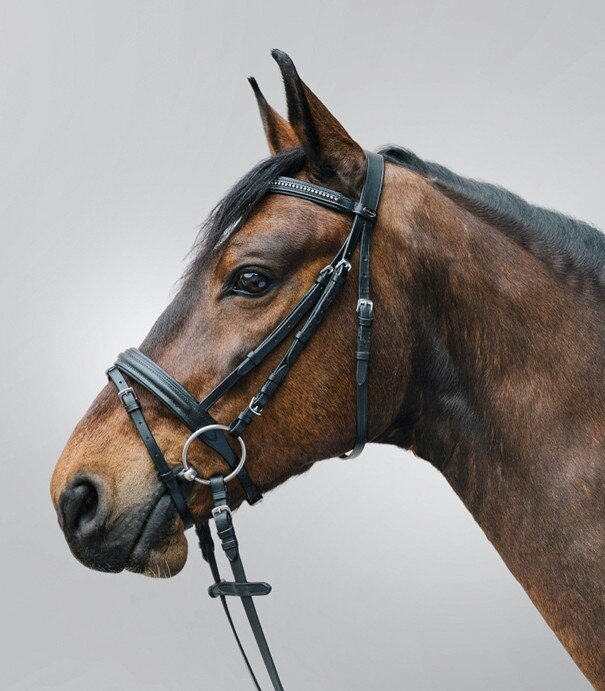 Eleganckie skórzane ogłowie STAR Diamant w kolorze czarnym w rozmiarze Shetty. Wykonane z wysokiej jakości, miękkiej skóry, przyjemnej w dotyku i gwarantującej wysoki komfort noszenia. Opaska ozdobiona jest błyszczącymi cyrkoniami, które nadają ogłowiu atrakcyjny i luksusowy wygląd.
