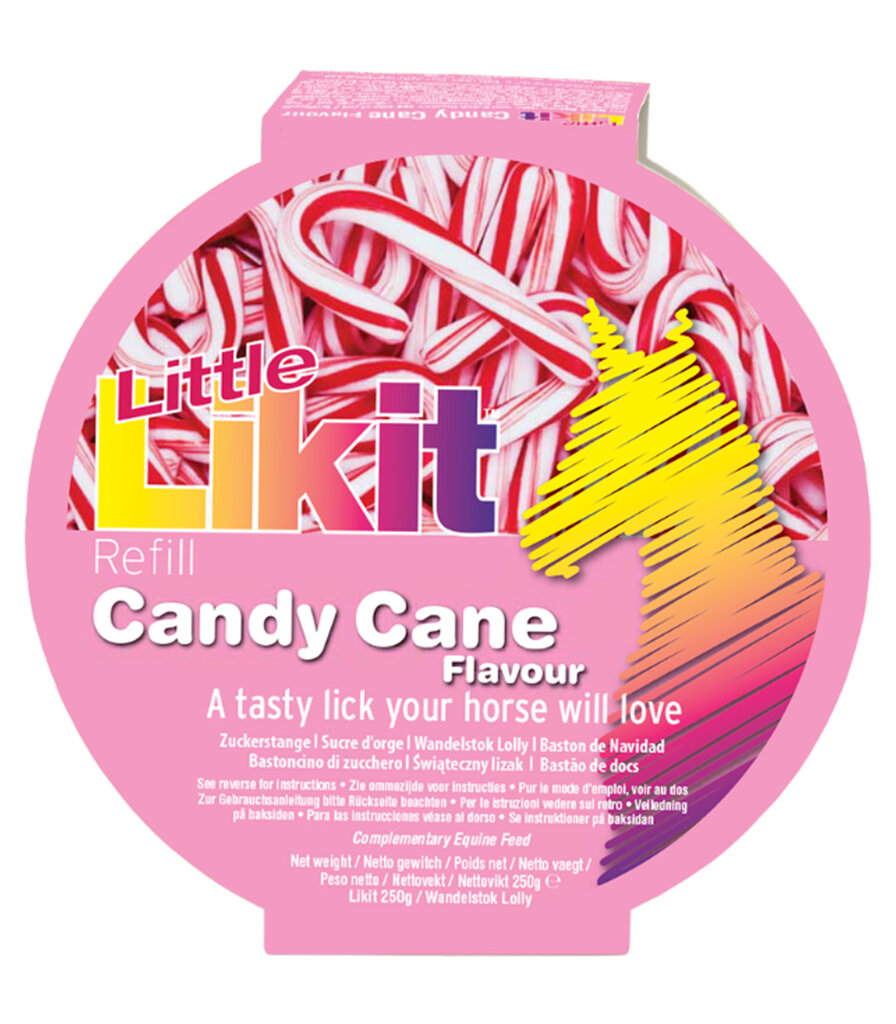 Likit Candy Cane je chutný, vitaminy obohacený liz vyrobený převážně z přírodní glukózové melasy. Pomáhá koním udržet se v psychické pohodě a zabaví je i v době, kdy nejsou pod dohledem člověka.