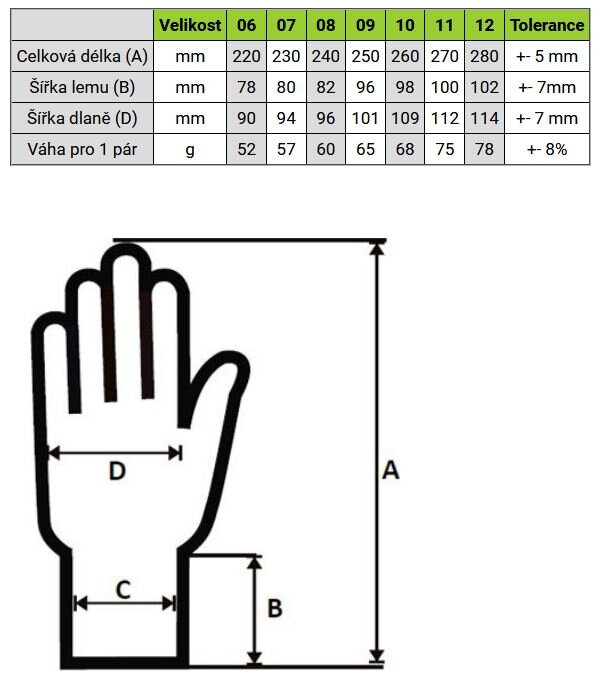 • grubość na dłoni: 1,1 mm (± 0,2 mm)