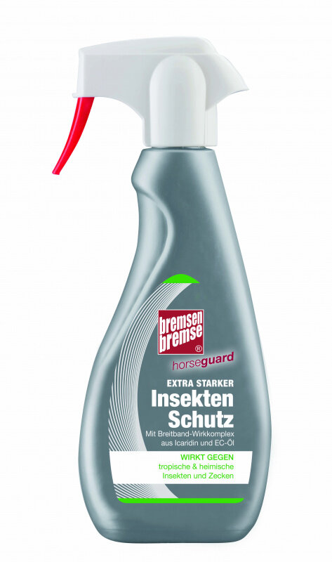 Naturalny repelent z 15-letnią tradycją opracowany specjalnie przeciwko muchom końskim działa długotrwale również przeciwko innym uciążliwym owadom, np. kleszczom, komarom i meszkom. Repelent dla koni i jeźdźców z szerokospektralną aktywną mieszaniną substancji czynnych. Działa także przeciwko komarom Culex i kleszczom Hyalomma.Pielęgnuje skórę dzięki substancjom działającym przeciw wysychaniu, takim jak Aloe vera, olej sezamowy, olej z awokado i olej orzechowy. Bremsen Bremse jest testowany alergologicznie i dermatologicznie i może być stosowany również na otwarte rany i wrażliwe miejsca, takie jak nozdrza i inne miękkie tkanki. Repelent Horseguard Bremsen Bremse® z kompleksem substancji czynnych Ikaridyny i olejków eterycznych pozyskiwanych z liści eukaliptusa cytrynowego działa (według badań terenowych prowadzonych bezpośrednio na koniach zgodnie z metodologią TNsG obowiązującą dla komarów i kleszczy) na zwykłe komary Culex pipiens do 8 godzin w zależności od aplikacji. Według tego badania repelent wykazuje pełną skuteczność przeciwko kleszczom z rodzaju Hyalomma marginatum.