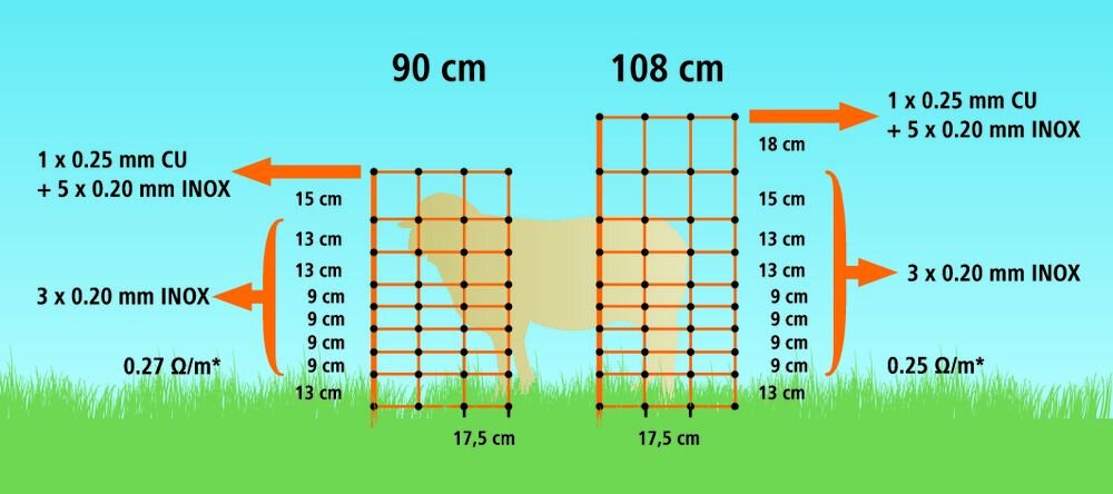 Siatki o wysokości 90 cm są szczególnie odpowiednie dla owiec, a w przypadku kóz tylko dla mniejszych ras.