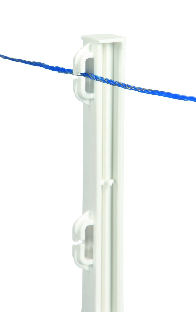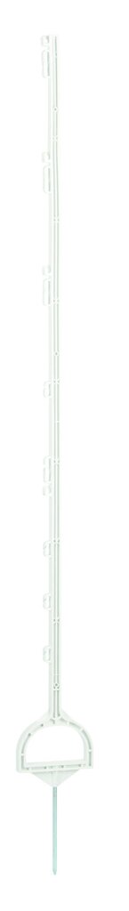 Plastikowy słupek EURO z mocowaniem schodkowym to praktyczne i trwałe rozwiązanie do budowy mobilnych i stałych ogrodzeń elektrycznych. Dzięki wzmocnieniu włóknem szklanym słupek zachowuje swój kształt, charakteryzuje się wysoką stabilnością i minimalnym uginaniem się pod obciążeniem. Nawet przy wielokrotnym użytkowaniu pozostaje prosty i stabilny, co zapewnia stabilne i bezpieczne mocowanie ogrodzenia.