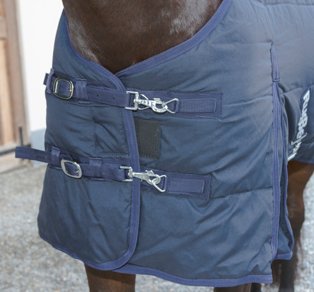 Atrakcyjna stajenna derka z szerokim pikowaniem, podwójnym regulowanym zapięciem na piersi na 2 sprzączki, rozcięciami na łopatkach dla swobodnego ruchu konia, krzyżowym zapięciem pod brzuchem jako ochrona przed przekręceniem, regulowanymi paskami między tylnymi nogami oraz ochroną ogona.• ocieplenie 150 g thermofleece