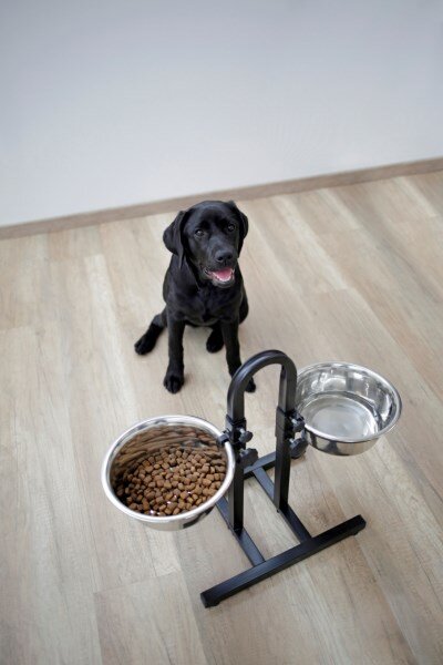 Stojak na miski dla psów wraz z nierdzewnymi miskami, 2x2800 ml, czarny