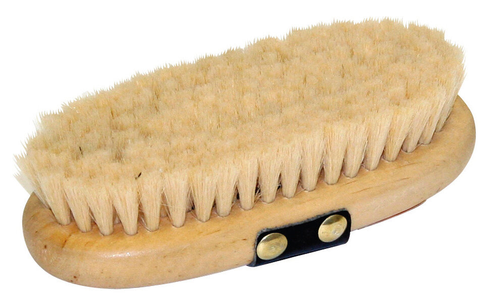 Owalna szczotka z naturalnego koziego włosia zapewnia perfekcyjny połysk. Idealna do końcowego wyczesania sierści.• korpus drewniany lakierowany