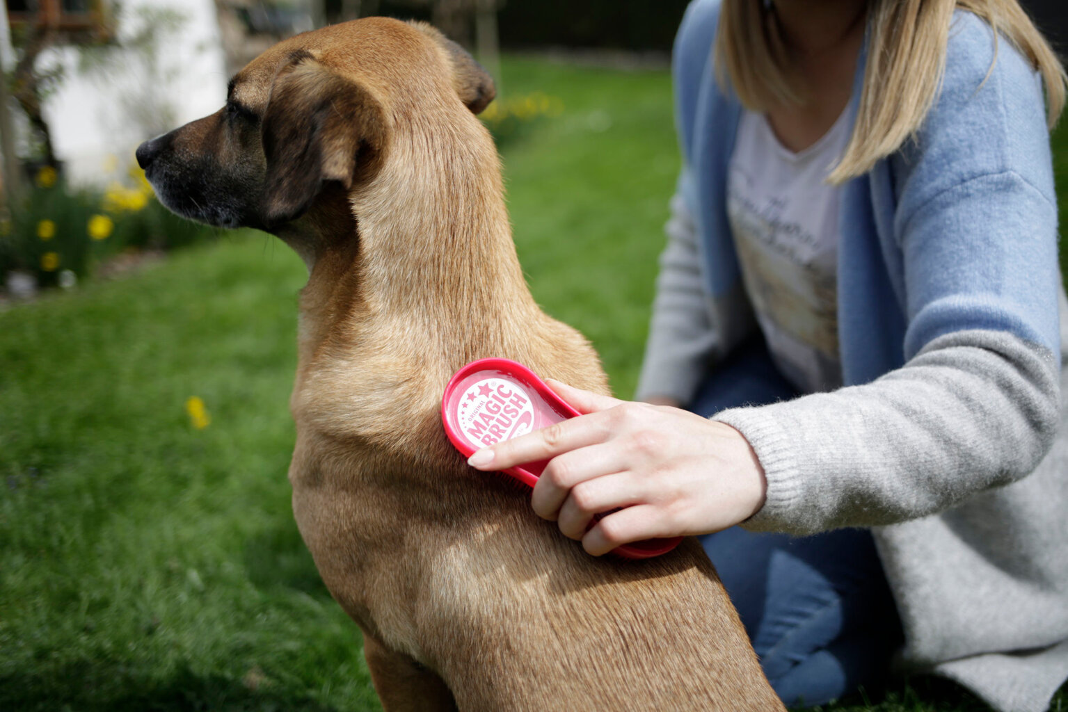 Szczotka plastikowa MagicBrush dla psów, różowa• idealna szczotka dla psów o krótkiej i średniej długości sierści