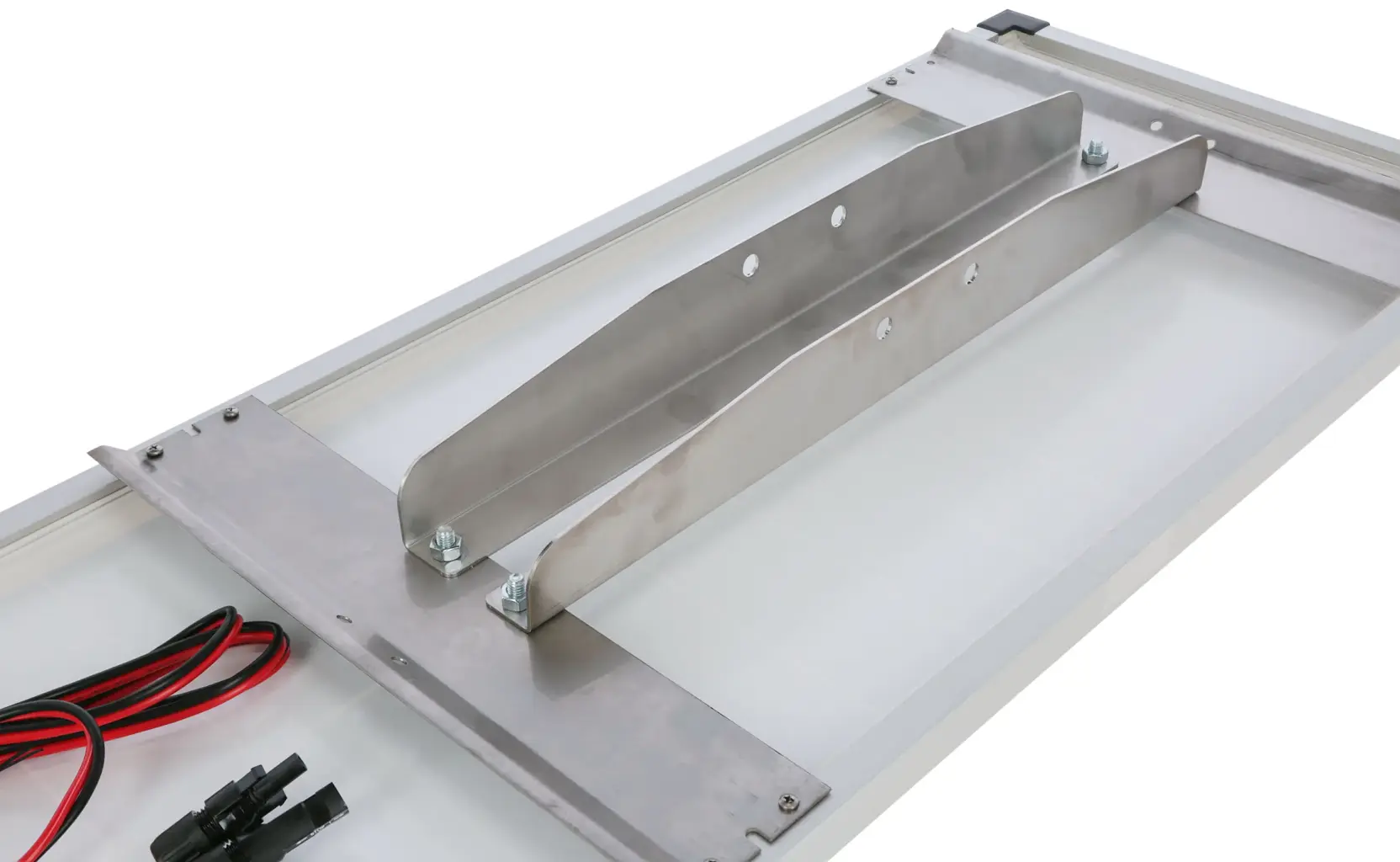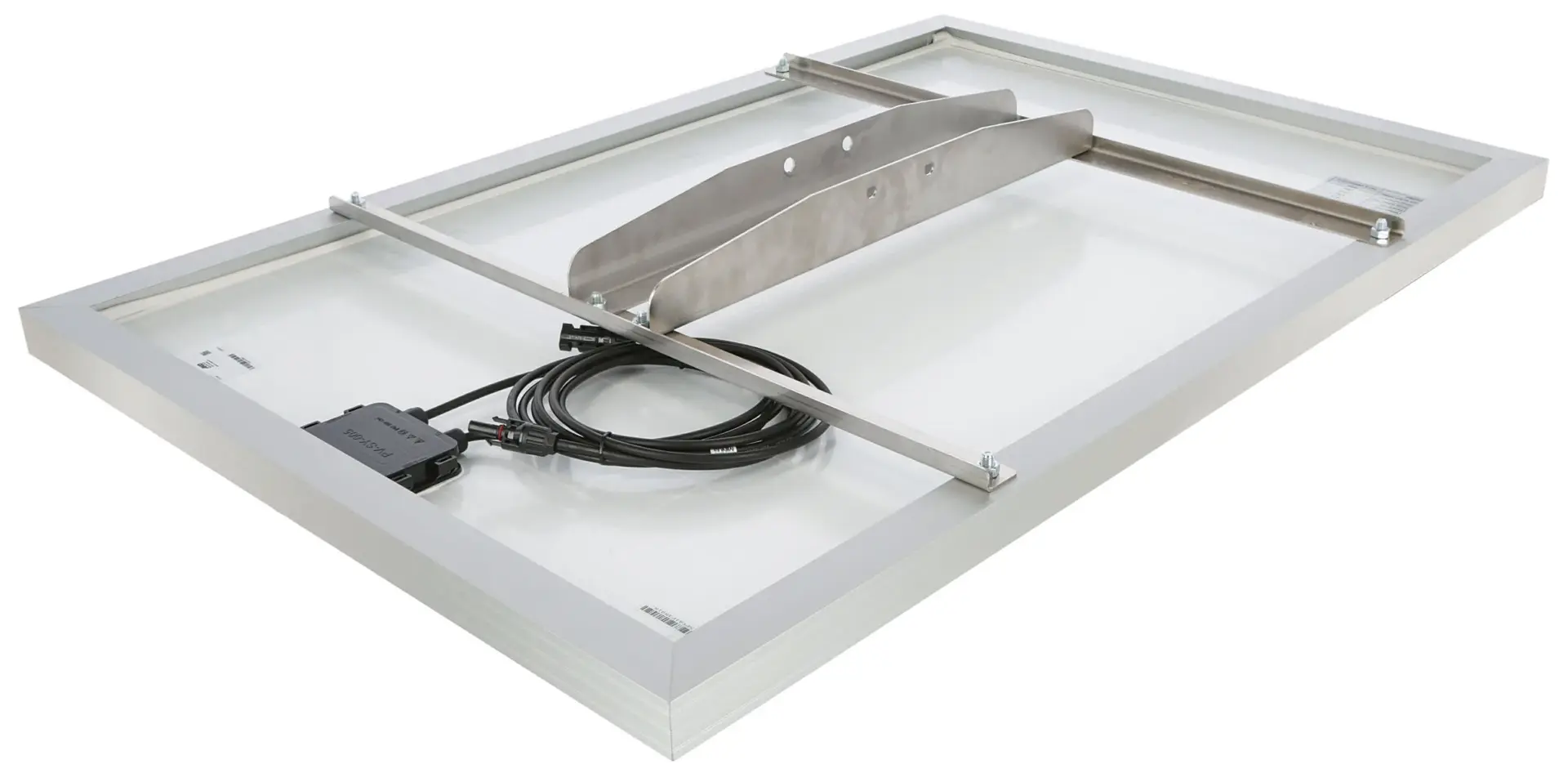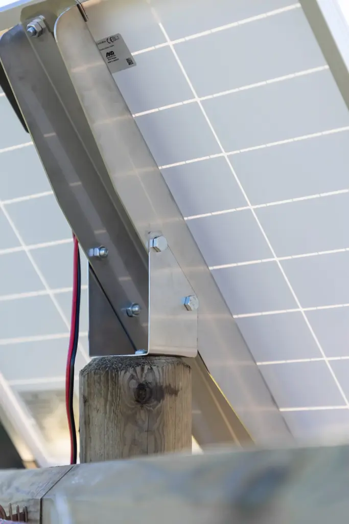 Zestaw montażowy przeznaczony do solidnego i bezpiecznego mocowania modułu fotowoltaicznego, np. do ogrodzeń elektrycznych. Umożliwia montaż panelu na wyższym słupku drewnianym, co zapewnia lepszy dostęp światła słonecznego.
