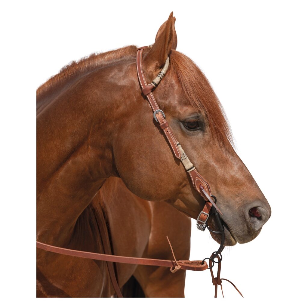 Westernowa uzda na jedno ucho z wysokiej jakości olejowanej skóry z kontrastowymi szwami i oplotem z surowej skóry.• uzda na jedno ucho