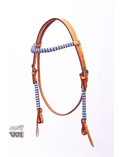 Westernowa uzda z miękkiej, wysokiej jakości skóry z klasycznym naczółkiem i okrągłymi paskami policzkowymi. Naczółek i paski policzkowe są zdobione niebiesko-srebrnymi koralikami.• westernowa uzda ze 100 % skóry