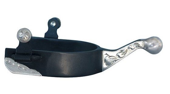 Delikatne westernowe ostrogi zakończone kuleczką, zdobione niemieckim grawerowanym srebrem.Klienci oceniają