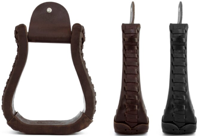 Plastikowe, lekkie westernowe strzemiona pokryte skórą olejowaną.• szerokość części pod stopę: ok. 5 cm
