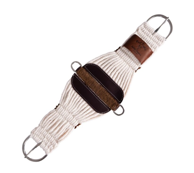 Westernowy moherowy popręg ze skórzanym wzmocnieniem środkowym i nierdzewnymi klamrami.• doskonale trzyma się, nie rozciąga się