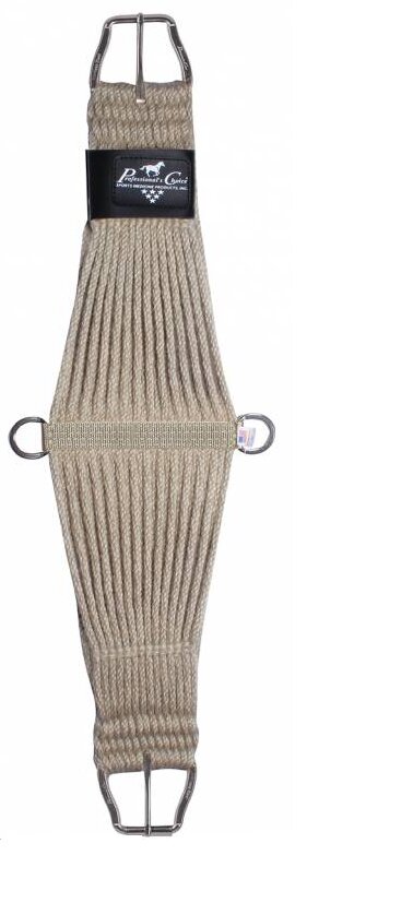Westernowy popręg Professional's Choice Roper wykonany w 100% z moheru, ręcznie tkany. Całkowicie naturalne włókna są miękkie, trwałe i mają naturalną elastyczność, dzięki czemu Twój koń może swobodnie oddychać. Odporne środkowe pierścienie D ze stali nierdzewnej są wzmocnione, aby zapewnić dłuższą żywotność i nie korodowały. Nierdzewna klamra rolkowa ułatwia mocowanie.UWAGA: Ze względu na naturalne włókno tego produktu, początkowo będzie mniejszy niż rozmiar, ale podczas użytkowania rozciągnie się do odpowiedniego rozmiaru.
