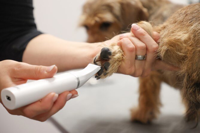 Maszynka wszystko w jednym do dużych, małych oraz trudno dostępnych obszarów twojego pupila, wraz z nasadką z kamieniem ostrzącym do regularnej pielęgnacji pazurków.