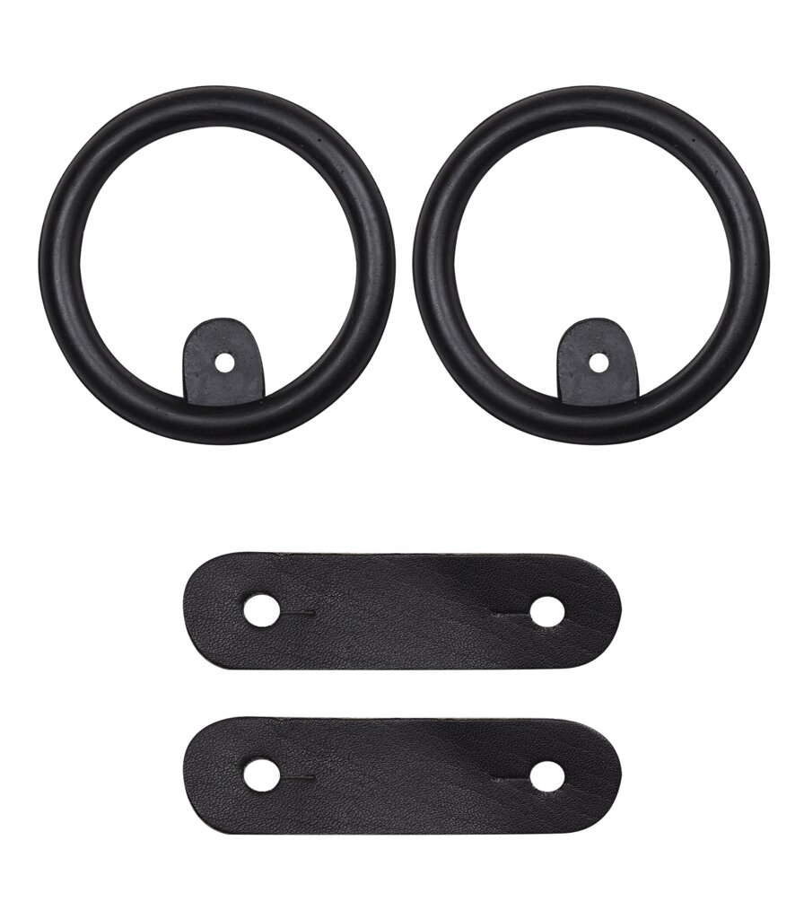 Zapasowy zestaw do bezpiecznych strzemion z gumą – zestaw zawiera 2 sztuki skórzanych pasków i 2 sztuki gumowych pierścieni. Pęknięcie bocznej gumy w strzemionach jest uznawane za spełnienie funkcji bezpieczeństwa.Zestaw do strzemion: 44430043