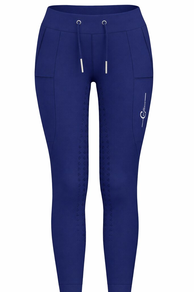 Legginsy jeździeckie zaprojektowane są w stylu sportowych spodni dresowych z kieszeniami na telefon komórkowy i inne drobiazgi po obu stronach. Dzięki 4-kierunkowej elastyczności i wyjątkowo szerokiemu, wygodnemu pasowi z ozdobną lamówką, idealnie trzymają się na miejscu, nie powodując zbędnego ucisku. Pełna lejność Covalliero zapewnia pewność w siodle.